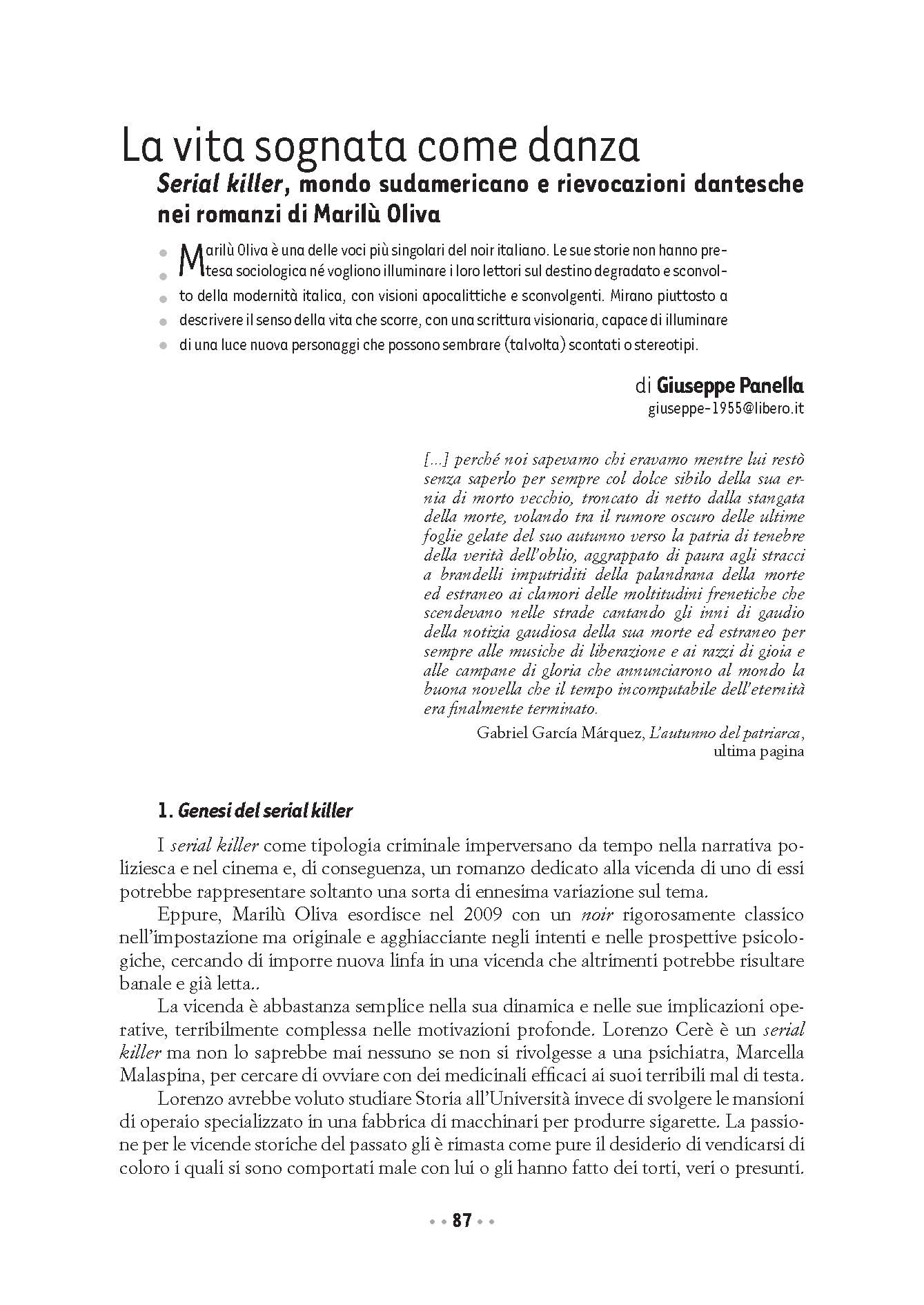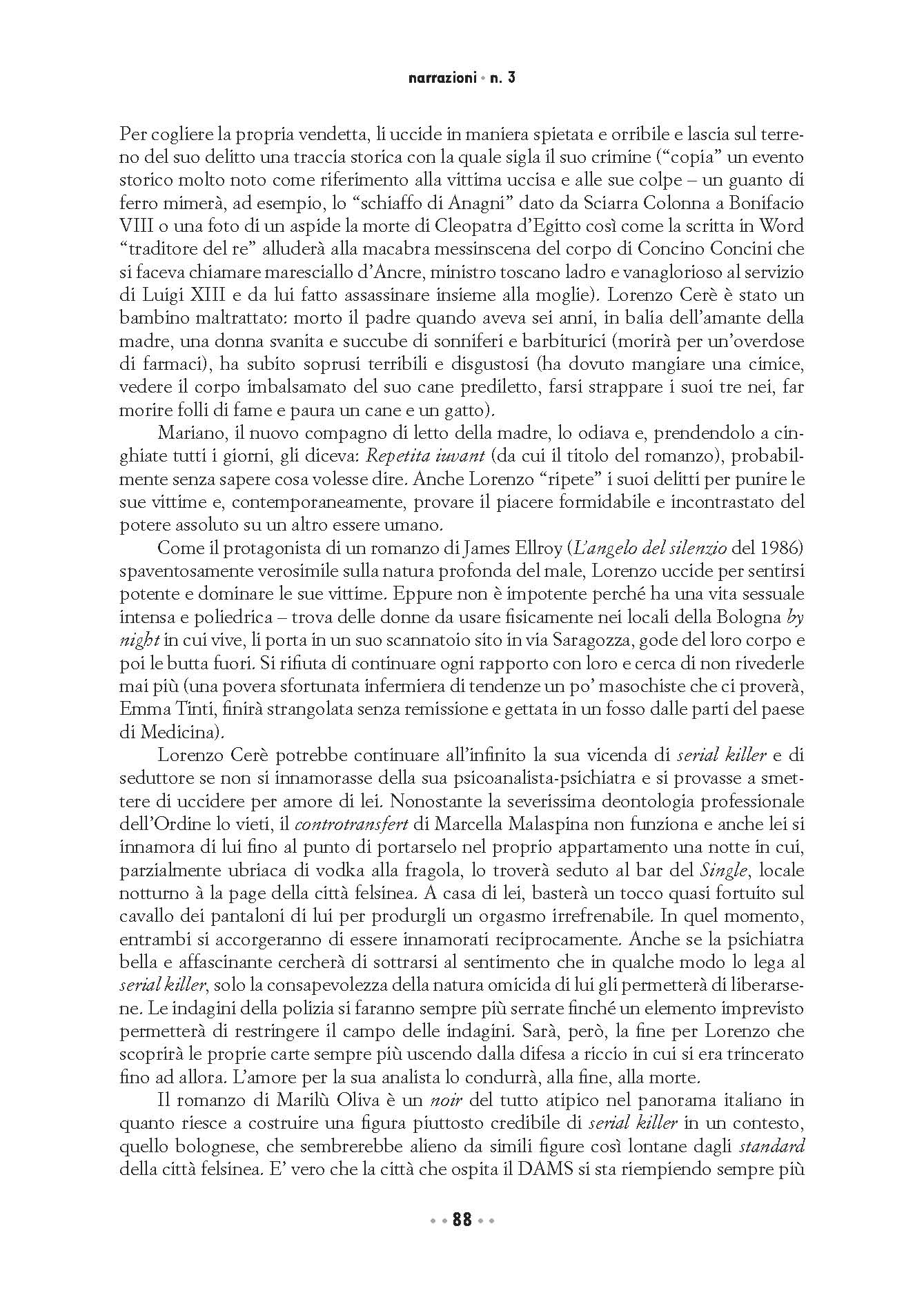 «Ciò che colpisce in Marilù Oliva, assieme all'estremo realismo delle storie e alla credibilità dei protagonisti, è l'innovazione linguistica. Ci si faccia caso: non c'è frase dal giro scontato, vieto, risaputo. Spesso si rimane colpiti dall'originalità ardita di espressioni e metafore. Ciò senza che venga meno la vertigine di uno stile sincopato che trascina, accattivante e quasi ipnotico. Abbiamo a che fare con una stilista». . (Valerio Evangelisti) |